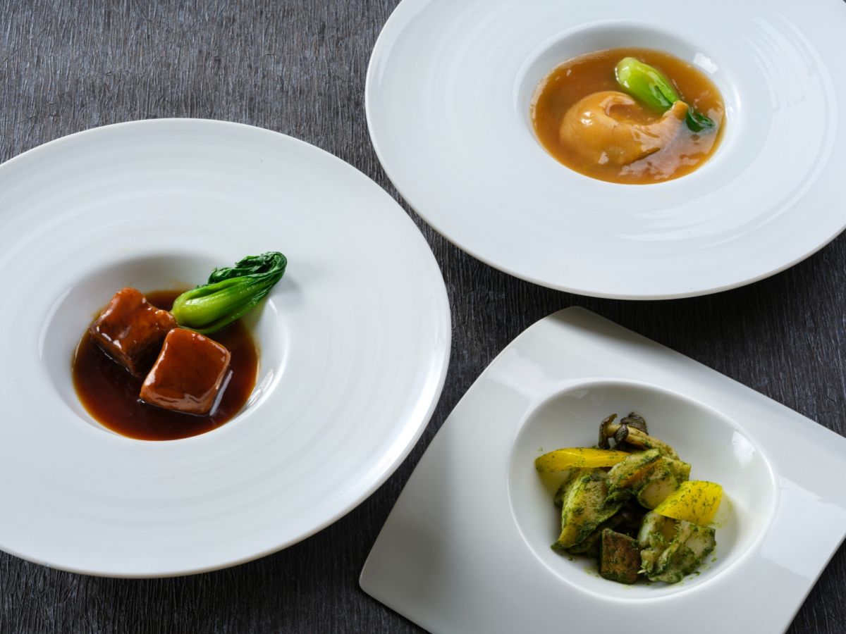 ディナータイムは、5品のセレクトスタイル&贅沢なふかひれ姿煮付きのコースもご用意しております。