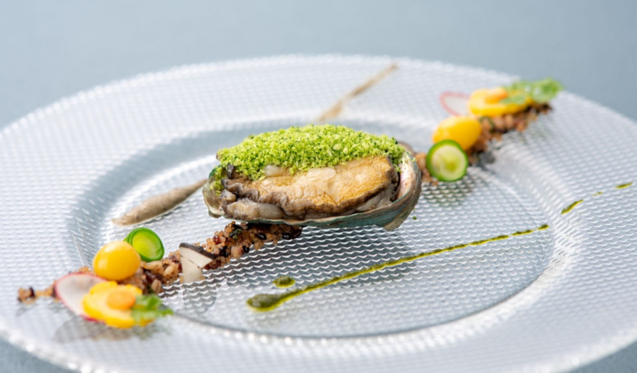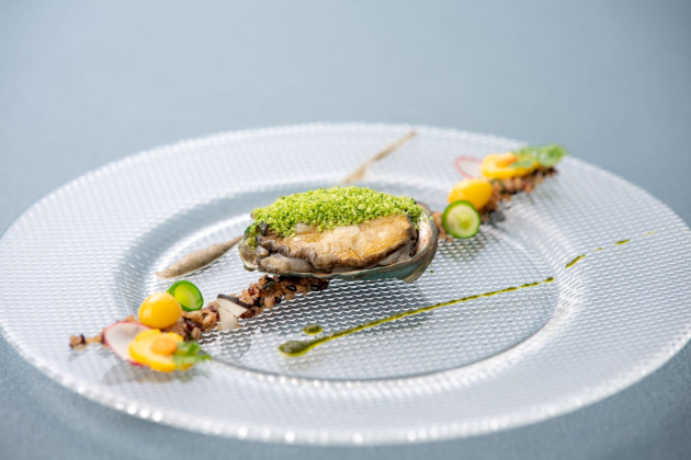 ■アワビのロースト ラタトゥイユ ムース・ド・タプナード ソース・ピストゥ