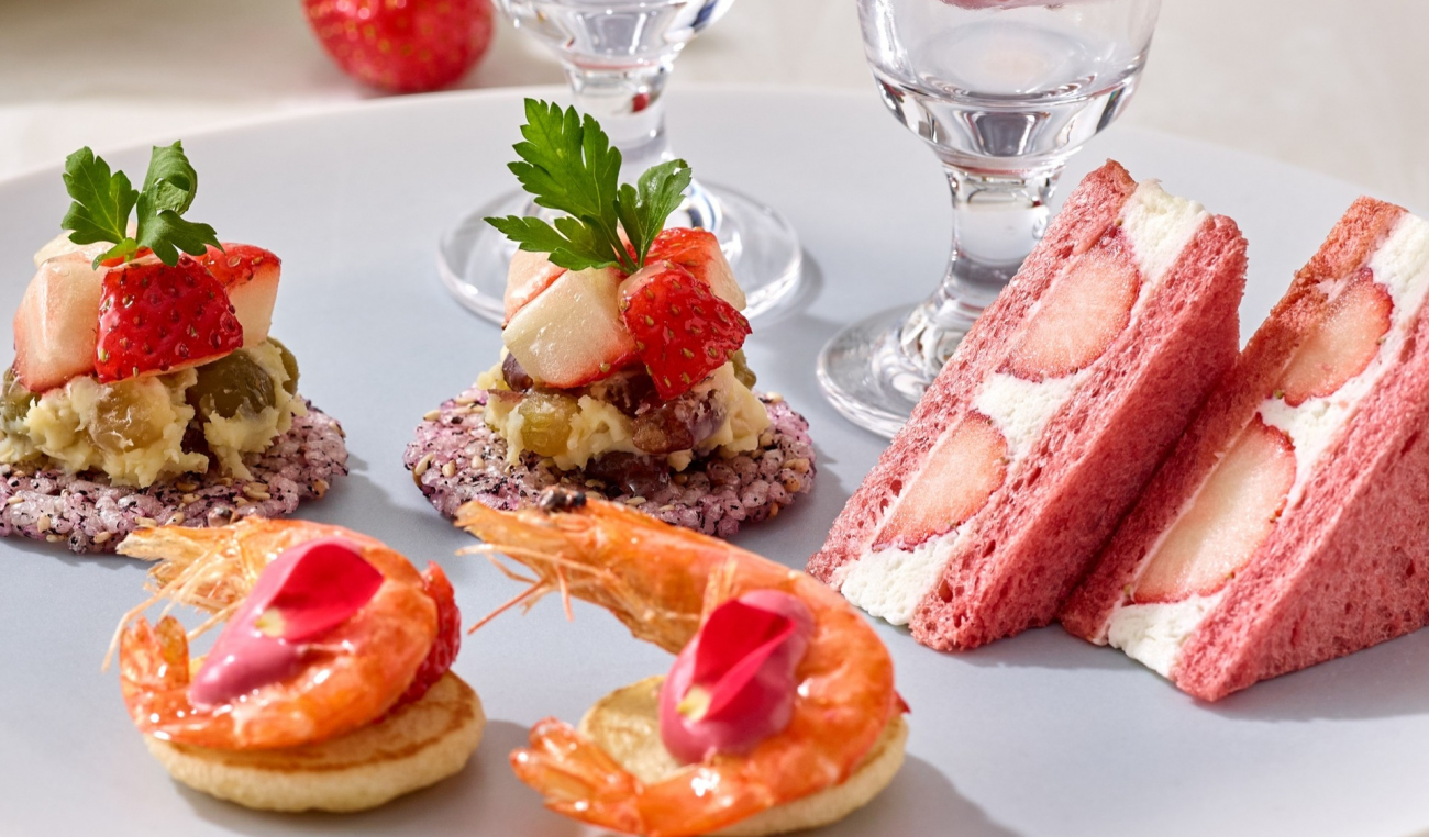 和食、フレンチ、2つのレストランを擁するベイサイドテラスならではのアフタヌーンティー。三重の自然に育まれた旬のいちごを和洋のシェフ・パティシエたちがそれぞれの技法を活かし、自由な発想でスイーツやセイボリーに仕上げました。