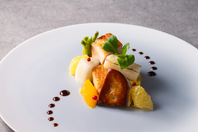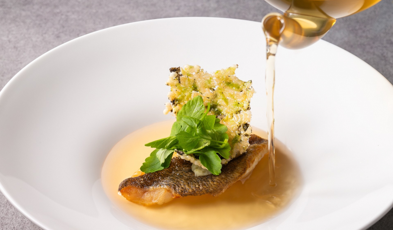 「春告げ魚」メバルを木の芽香るスープで仕立てた魚料理。