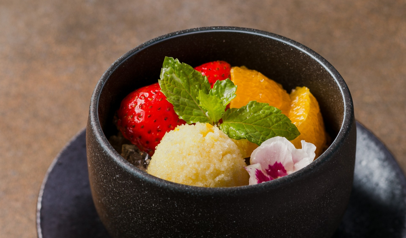 ■デザート 柚子シャーベット 果物 白ワインジュレ
