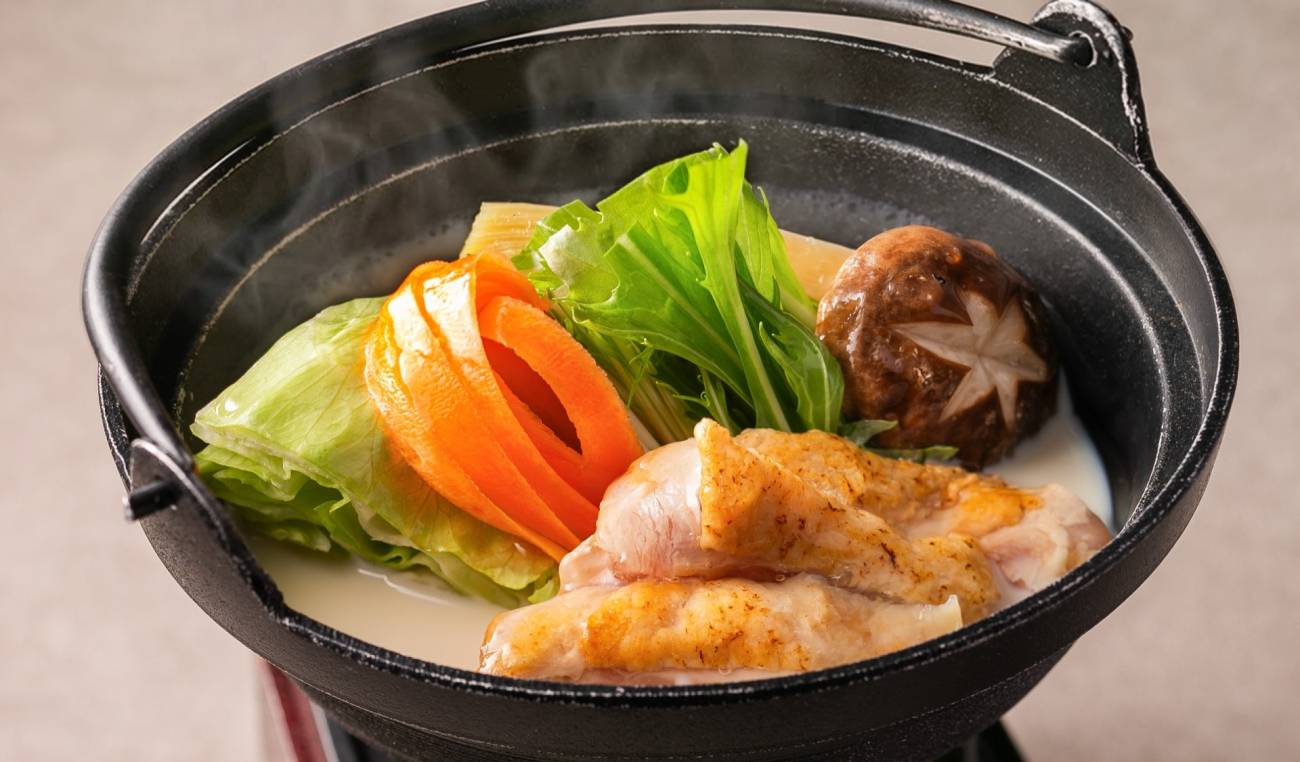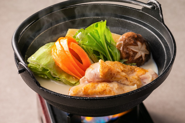 鍋料理は三重のブランド鶏「伊勢どり」をまろやかな豆乳鍋で。