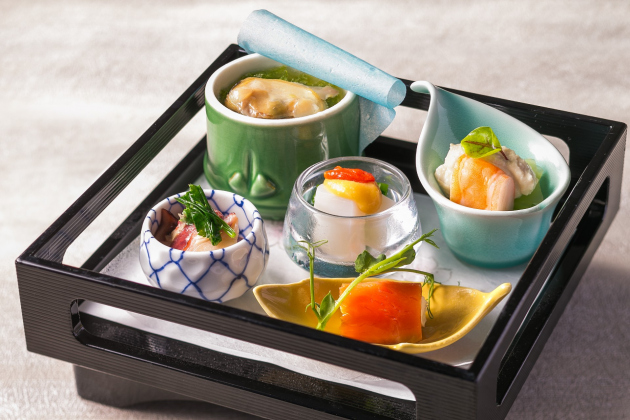 春の露草コースは、山椒の爽やかな香りが印象的な焼物『伊勢海老木の芽醤油焼き』、