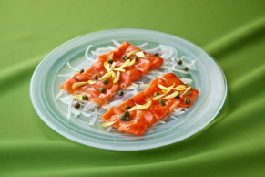 スウェーデンを中心とした北欧で親しまれているサーモン料理。爽やかな酸味のレモンオニオンレリッシュを合わせました。