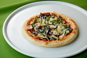 山菜の風味を生かし、トマトソースをベースにしたピザです。