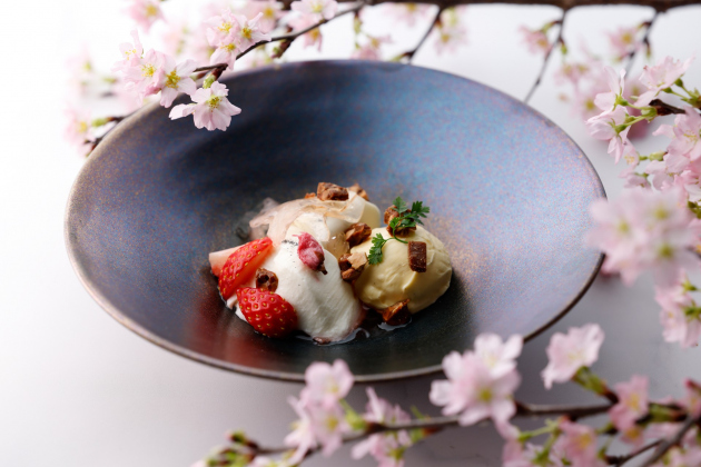 苺と桜の香りを添えたブランマンジェと共に、春の余韻をやさしくお愉しみください。
