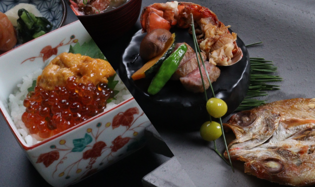 飛騨牛、松茸、真名鰹、牡丹海老、雲丹。