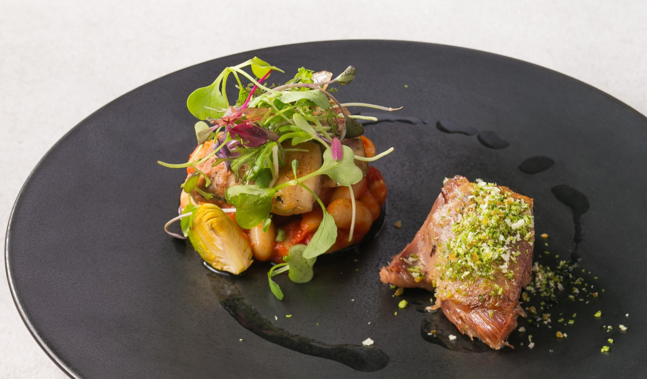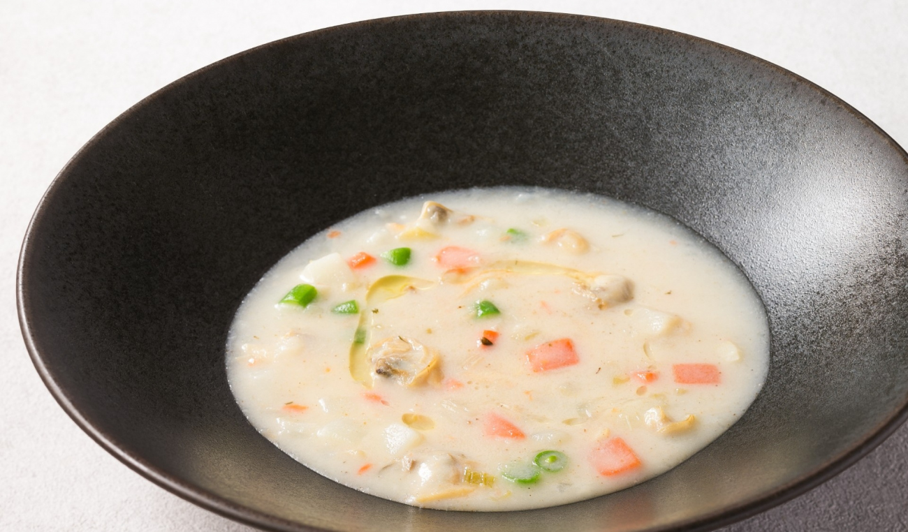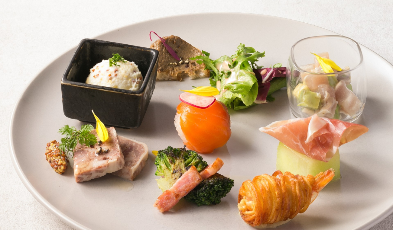 9種の前菜盛り合わせ、旨味たっぷりのクラムチャウダー、メインにはじっくり火入れしてしっとりと仕上げた鴨のコンフィを。