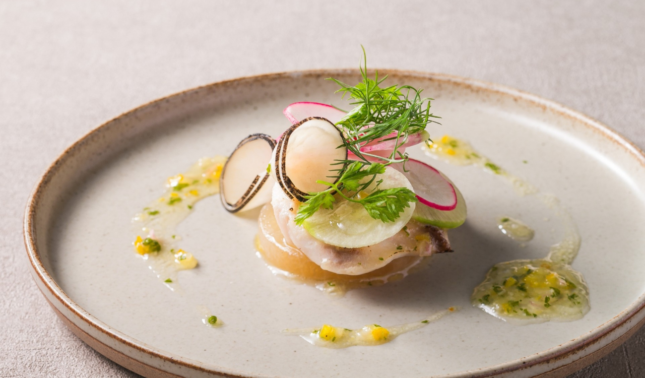 ●ブリのコンフィ 根菜のサラダ 柚子の香り