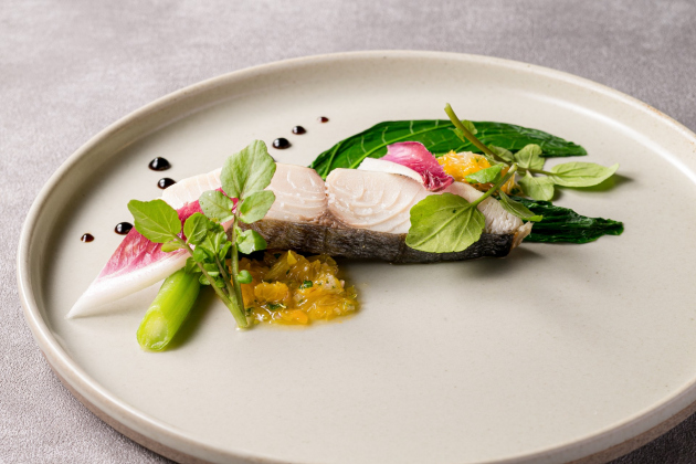 【仔牛のクルート】または【鰆のポワレ 柑橘のビネグレット】から1品、メインをお選びいただけます。