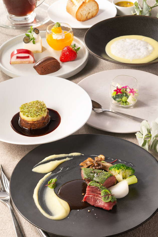 デザートは、パティシエ特製のワゴンデセール。季節ごとに作り上げる数種のスイーツの中から、お好きなものを、お好きなだけお召し上がりいただけます。