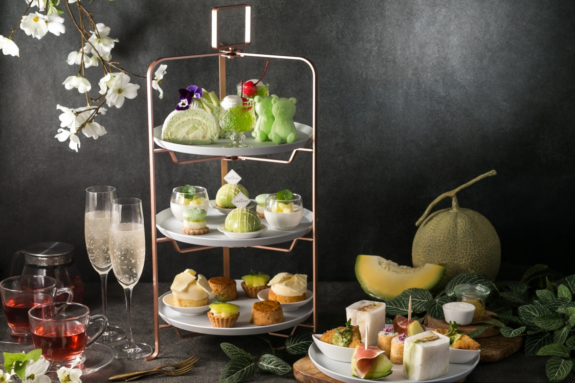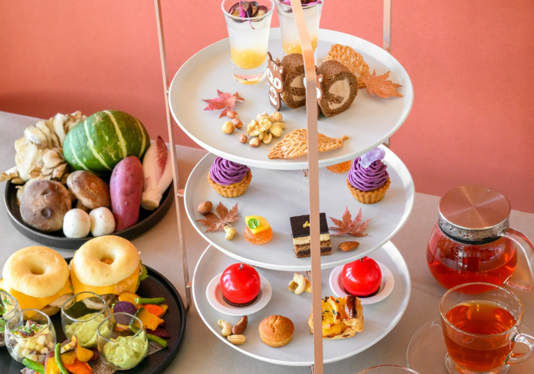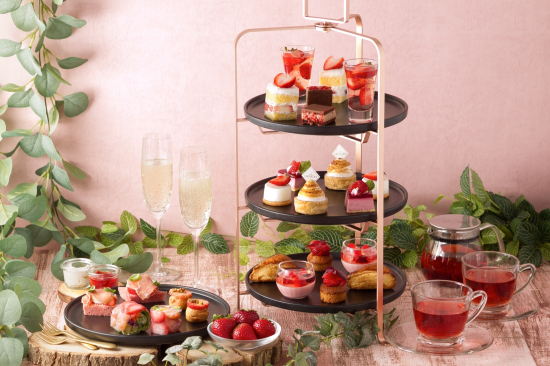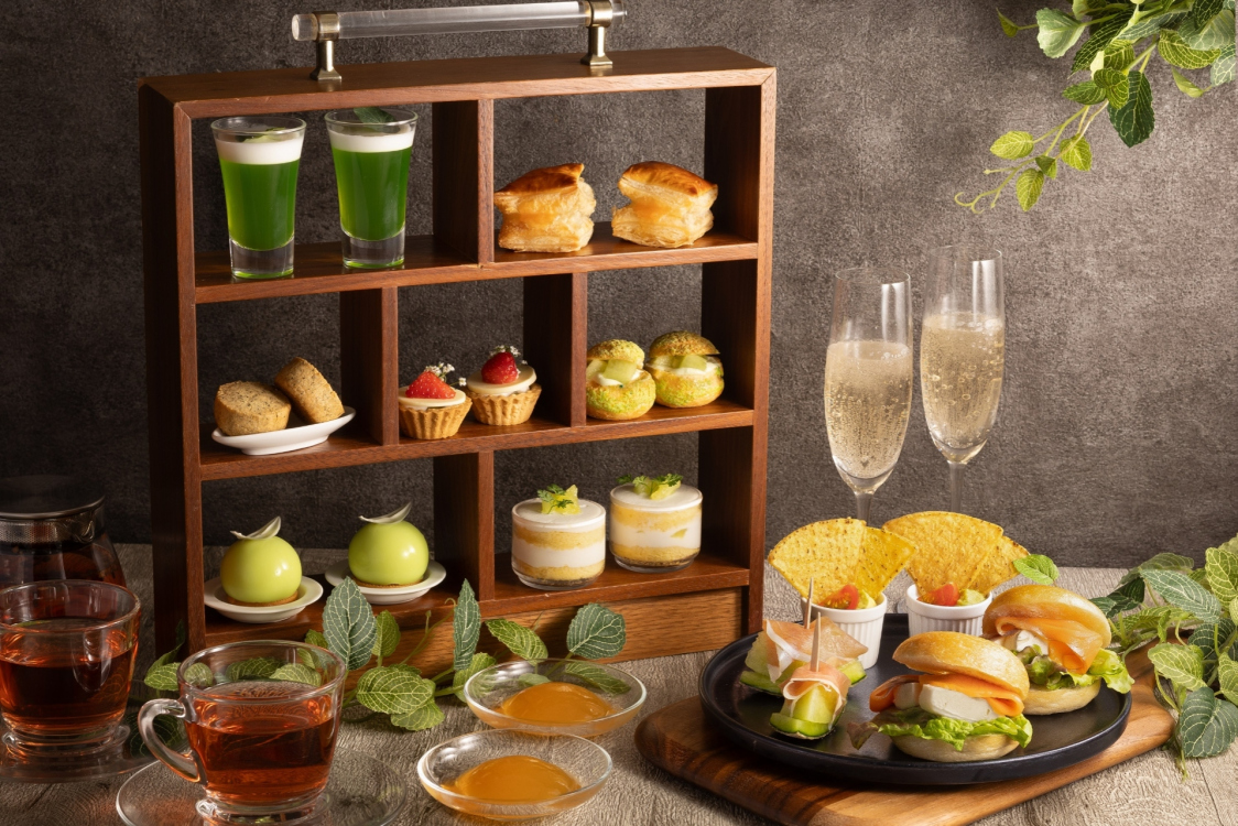 季節ごとにテーマが変わる都ホテル博多のオリジナリティあふれるアフタヌーンティー。目でも舌でも楽しめる約10品のスイーツやセイボリーを、都ホテル博多のパティシエが毎回試作を重ね、生み出しています。コーヒーやカフェラテに加え、フランスの高級ティーメゾン、KUSMI TEAなどのフリーフローのドリンク付きでお楽しみいただけます。