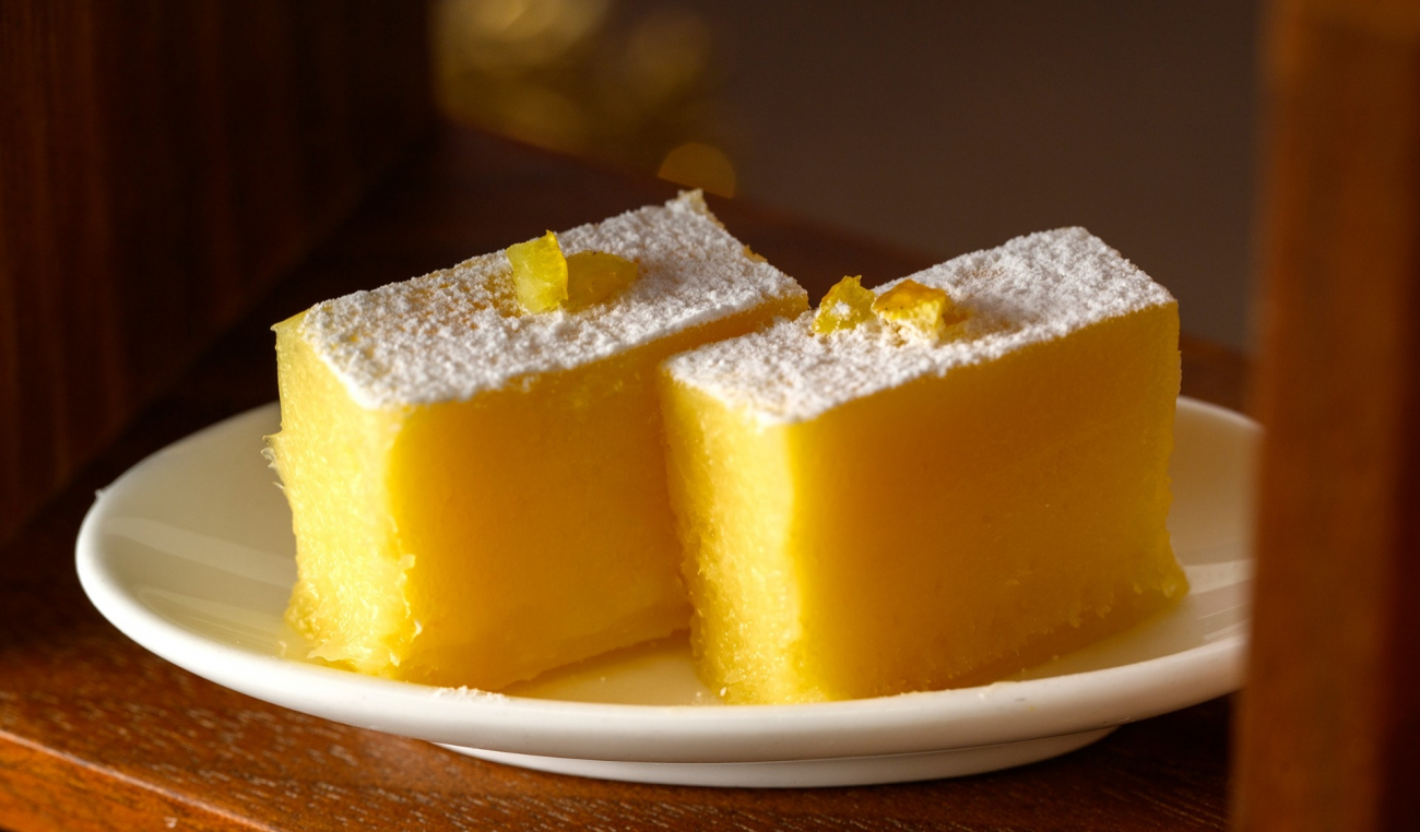 ◆柚子のテリーヌショコラ:濃厚なチョコレートに、柚子の爽やかな香りをあわせました。和のアクセントが甘さを引き立てます。
