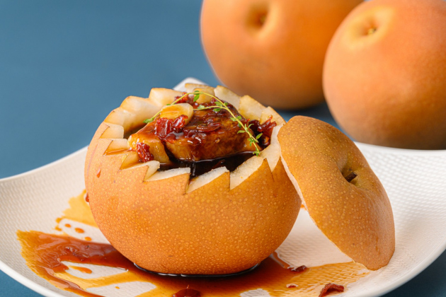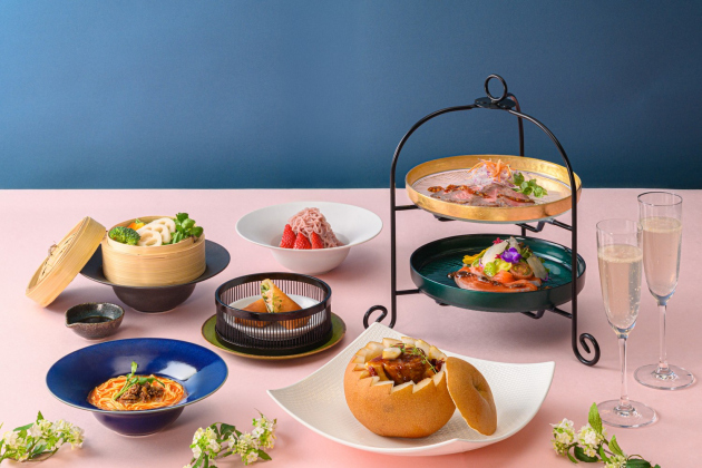 梨の生産が盛んな栃木県のオリジナル品種梨「にっこり」を器に見立てたインパクト抜群のポークステーキや、栃木県の特産魚「ヤシオマス」を前菜や春巻きにアレンジするなど、栃木県産食材を贅沢にとりいれたイブニングハイティーです。モダンチャイニーズと栃木県産の美味しい食材が融合したここでしか味わえない一品をお届けします。
