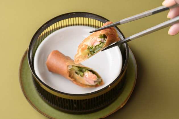 栃木県の特産魚「ヤシオマス」や那須高原今牧場のチーズ「りんどう」を巻いたオリジナル春巻き