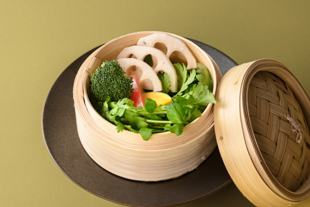 HALOWオリジナル中華ダレで味わう蒸籠蒸し野菜