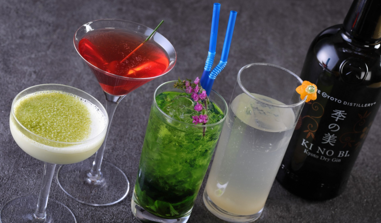 お米から造るライススピリッツと伏見の伏流水をベースに、柚子や玉露など日本ならではのボタニカルを使用し造られた、プレミアムクラフトジン「季の美」をベースとした和のカクテルをご用意いたします。