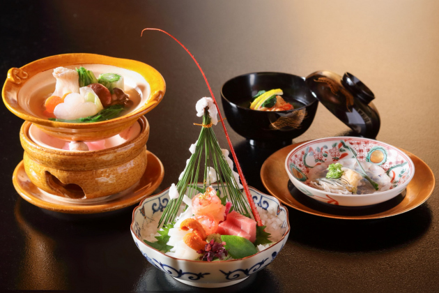 「黄綬褒章」や「現代の名工」など数々の受賞歴をもつ日本料理 うえまち 料理長 茅ヶ迫 正治が、冬の味覚の代表 ふぐ・クエ・蟹などを使用したワンランク上の会席を、2日間限定でご用意します。熟練の技が光る盛り付けと、繊細なお料理をご堪能ください。また、お料理に合う地酒のペアリングもご用意していますので、会席と合わせてお楽しみいただけます