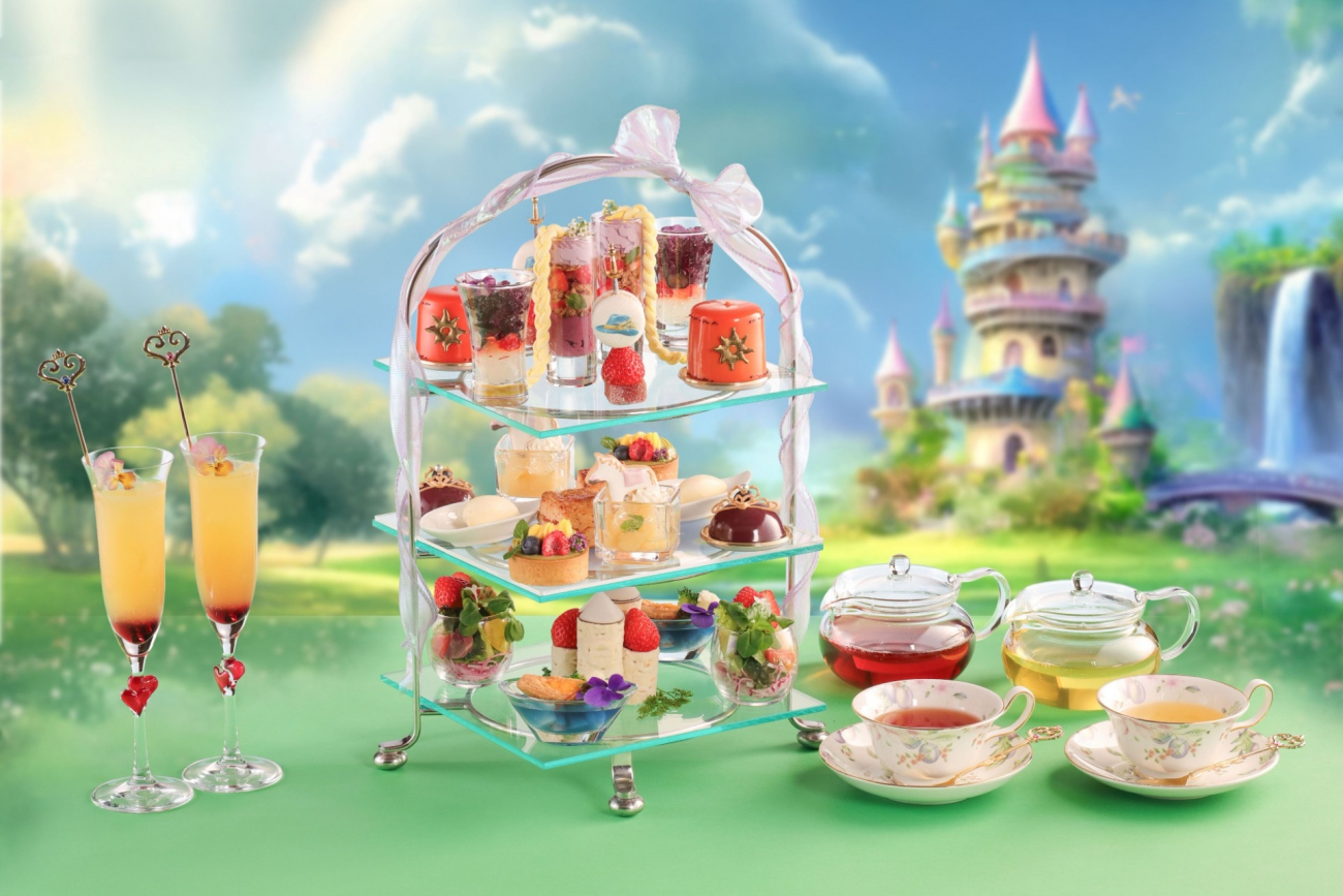 ラプンツェルのトレードマーク「三つ編み」をギモーヴで表現したグラススイーツやランタンに見立てたムース、塔をイメージしたローストビーフのホットロールサンドなど、童話「ラプンツェル」の世界観が楽しめる、旬のいちごで彩られた華やかなアフタヌーンティーです。