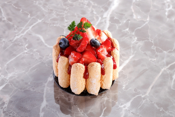 北海道産生クリームを使用したバニラムースと甘酸っぱいベリームースをさっくりふんわり焼き上げた生地で包みました。フレッシュなベリーと一緒にお楽しみください。