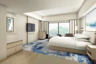 優雅な佇まいでクラス感あふれるゲストルーム。心地よい眠りを約束するベッド「シェラトン シグネチャー スリープ エクスペリエンス」。「和の伝統」と「洋のモダニティ」が見事に融合した空間で、寛ぎという名の贅沢なひとときを。