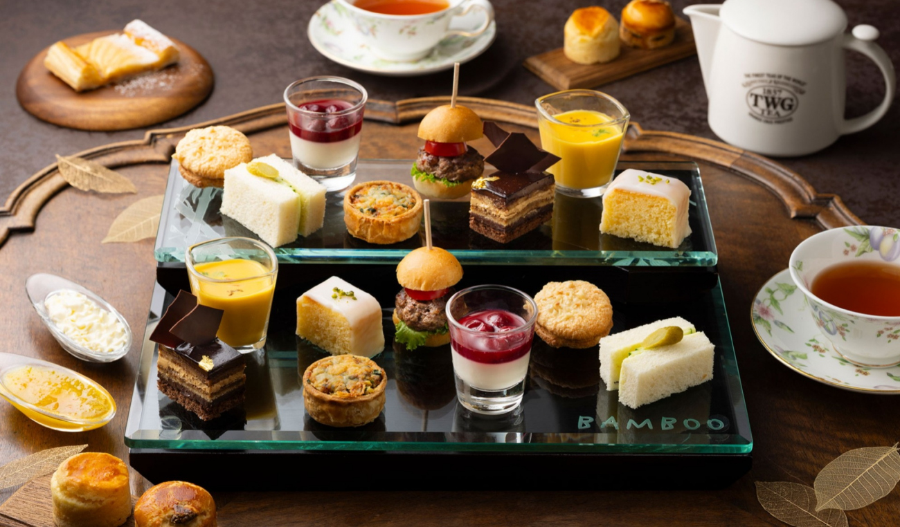 アップルパイやオペラなど伝統菓子に加え、キッシュやキューカンバーサンドといった定番セイボリー、クロテッドクリームとともに味わうスコーンをご用意しました。クラシカルな品格をおたのしみください。