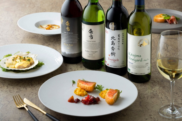 北海道・余市町のワインを「カフェ カリフォルニア」「鉄板焼 しろかね」で提供いたします。北海道食材を使った料理のマリアージュをお愉しみください。