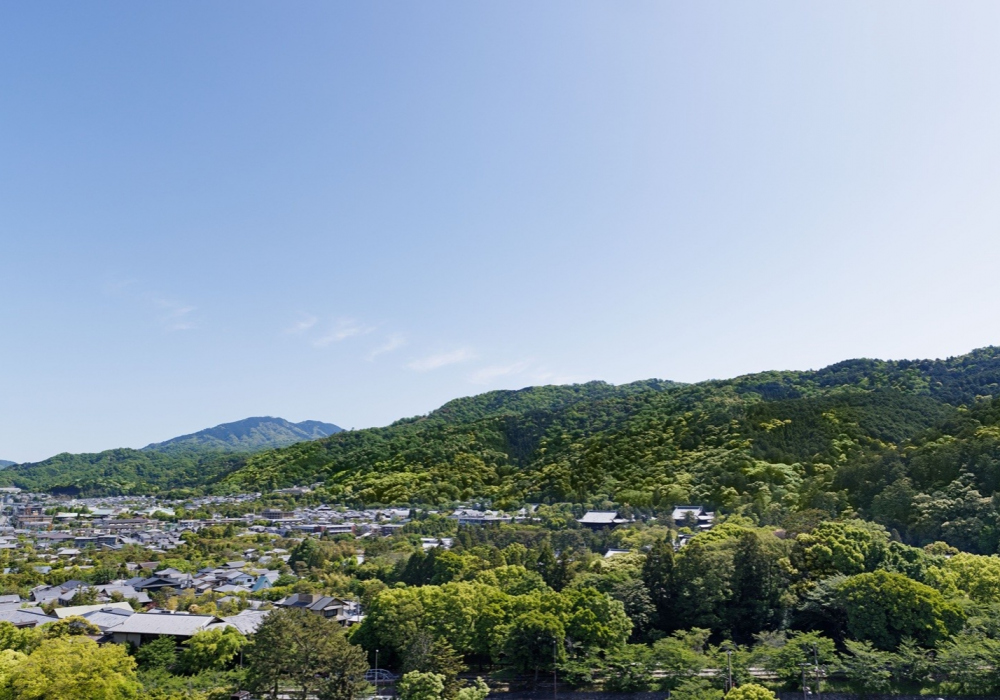 シャンパンゴールドの金物と、R形状の家具や内装のディテールで居心地の良い空間に。ナイトランプはレトロガラスを模した照明にする等、レトロモダンな雰囲気のなか、リラックスしたひと時をお過ごしいただけます。お部屋の窓からは、東山の雄大な自然や美しい街並みが広がる景色をお楽しみください。