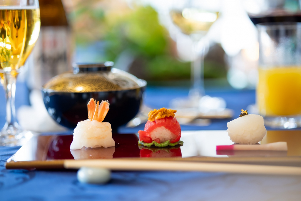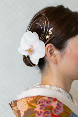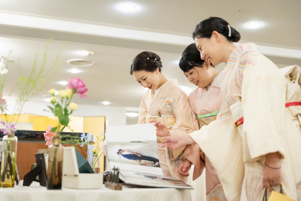 鳳凰の間のテラスでの、美しい着物姿が印象的。