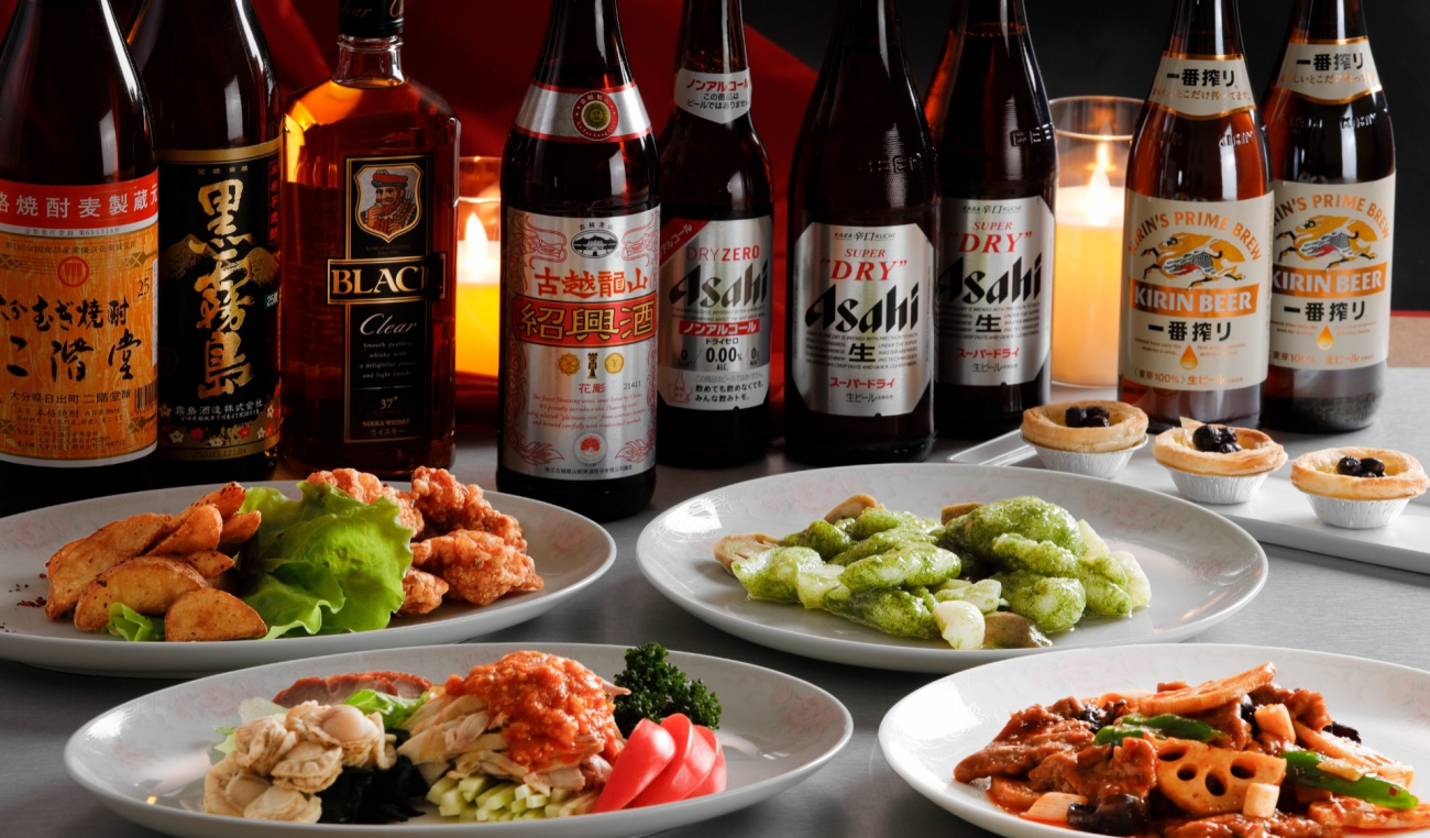 瓶ビール/ノンアルコールビール/日本酒/焼酎(芋・麦)/紹興酒/ウィスキー/炭酸水/烏龍茶/オレンジジュース/アップルジュース/グレープフルーツジュース